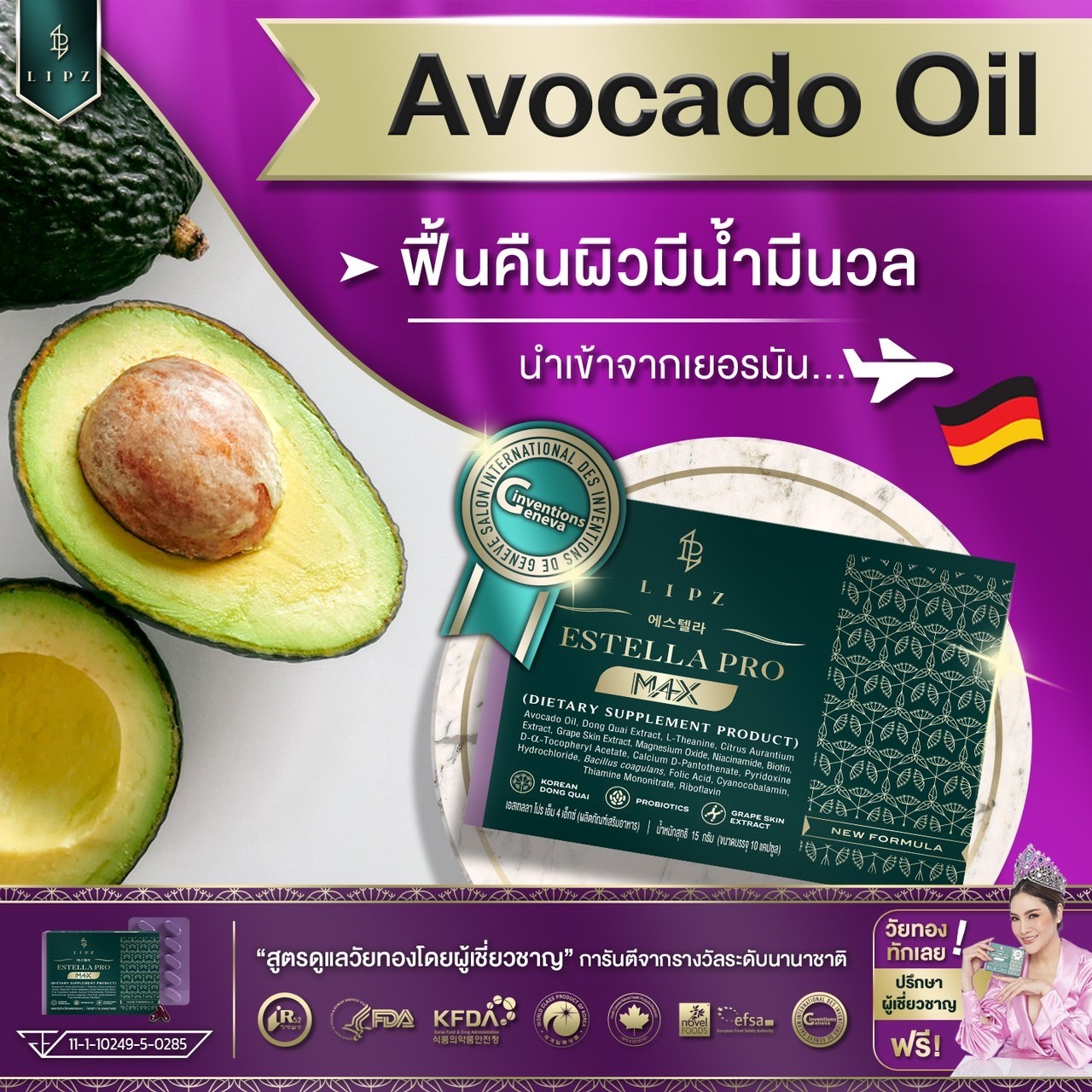 . . #EstellaPro ช่วยผิวพรรณเต่งตึง มีน้ำมีนวล สิว ฝ้าฮอร์โมน ด้วยสารสกัด . #น้ำมันอะโวคาโด ไขมันดี นำเข้าจากเยอรมัน ปรับสมดุลในร่างกาย #Biotin มีส่วนสำคัญในการเผาผลาญไขมันและโปรตีน โดยรวมจะช่วยรักษาสุขภาพผิวพรรณ เส้นผม และเล็บ หากขาดไบโอตินอาจมีอาการผื่นผิวหนังอักเสบบริเวณหน้าและตัวได้อีกด้วย #Vitamin E การรับวิตามินอีที่เหมาะสมจะช่วยป้องกันและซ่อมแซมการสึกหรอของเส้นผม ผิว และเล็บ และเสริมการทำงานของฮอร์โมนเพศให้สมดุล #Folic acid ช่วยบำรุงผิวพรรณและสุขภาพ แก้ปัญหาสีผิวไม่สม่ำเสมอ #Riboflavin ช่วยให้ผิวเปล่งปลั่ง สุขภาพดีและป้องกันการเกิดมือเท้าชา ![]() |