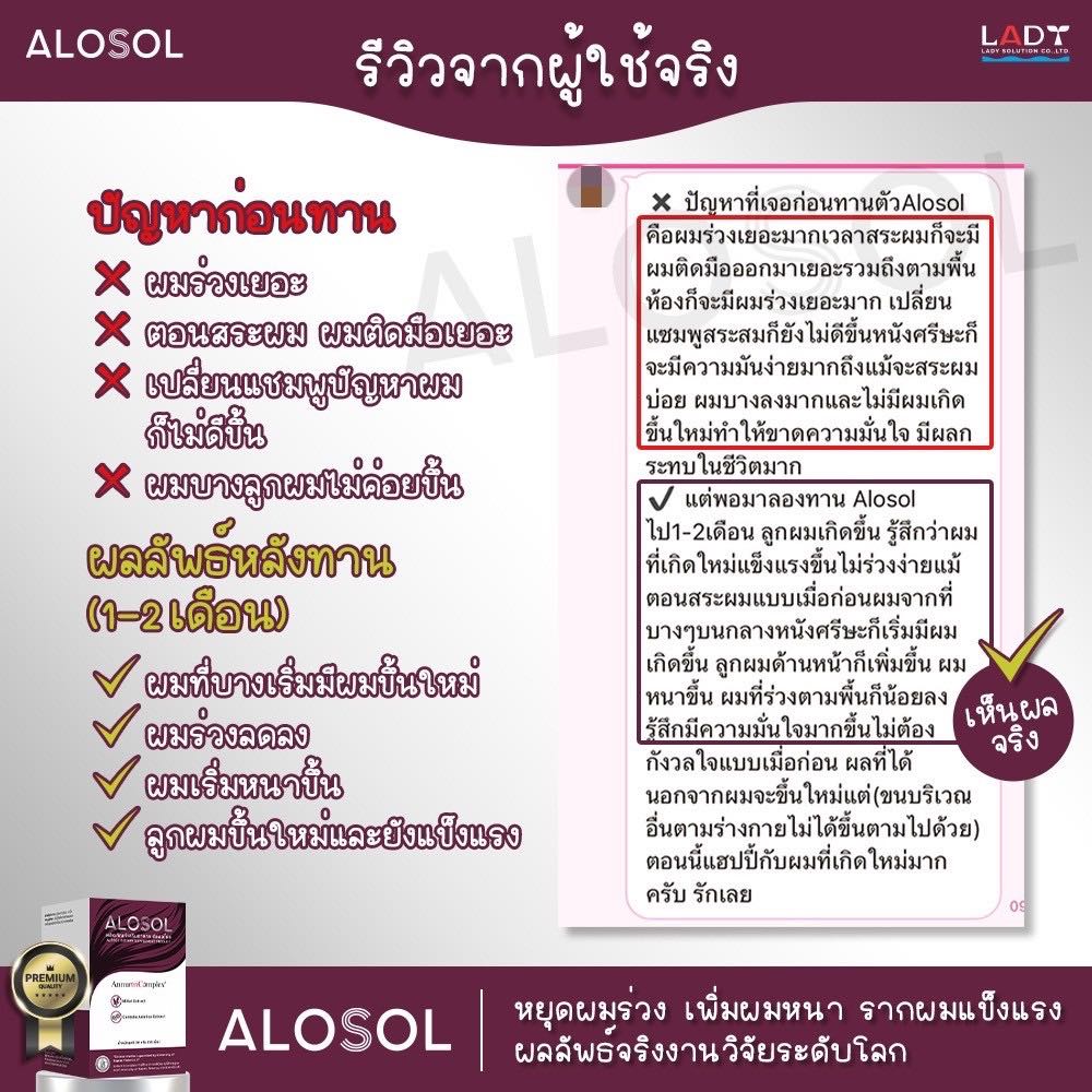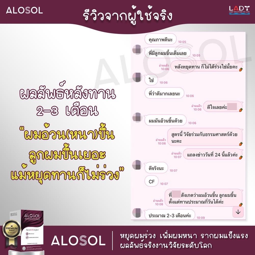📢Alosol อาหารเสริมสุขภาพผมและทวงคืนเส้นผม ของคนรักผมที่ทุกข์ทนกับผม ร่วง ผมบาง ศรีษะล้าน