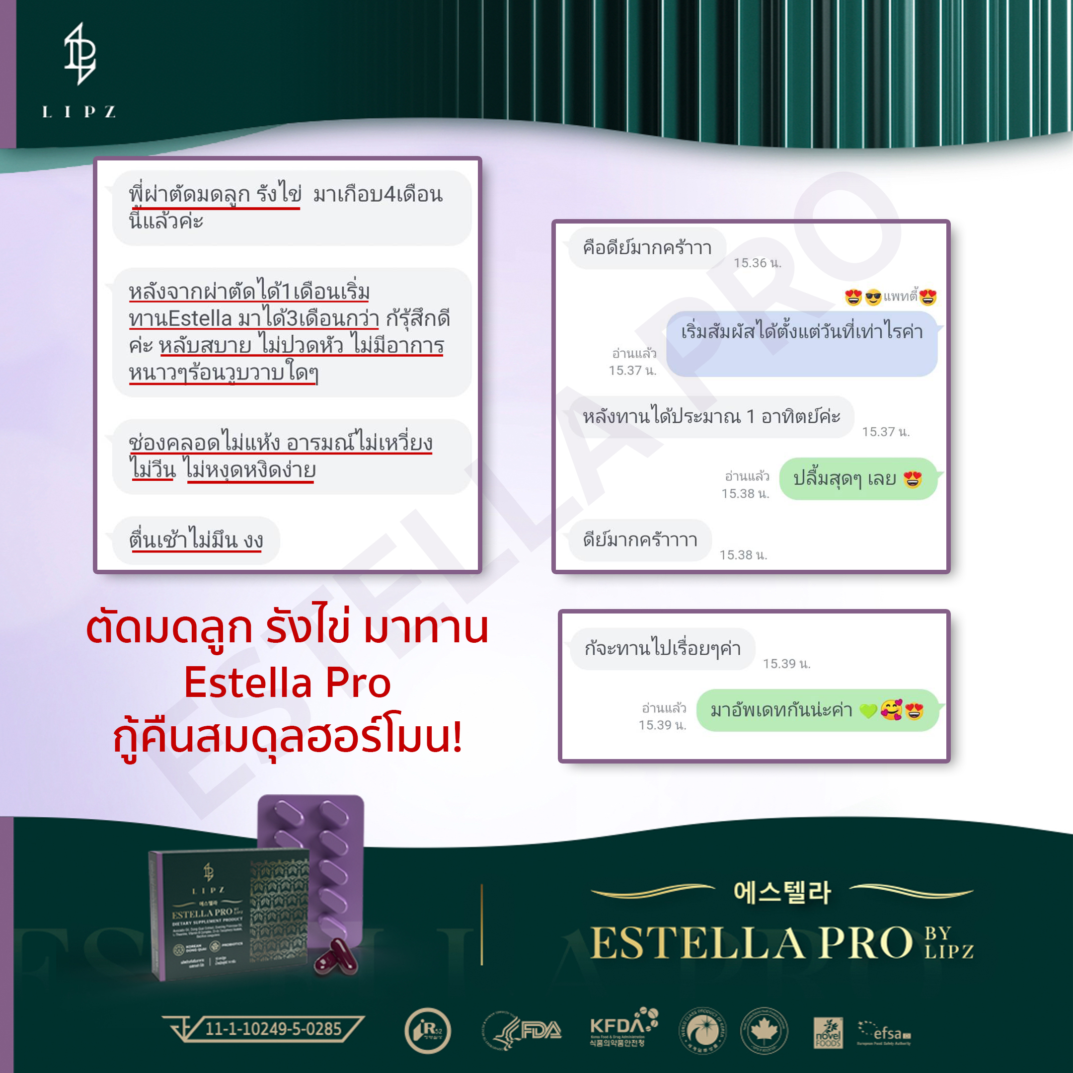 #ใครตัดมดลูกรังไข่และทรมานจากอาการวัยทอง ##พิสูจน์แล้วหยุดยาทุกอย่าง ทานแค่ #EstellaPro วันละ 2 เม็ดก่อนนอน (*ผลลัพธ์ขึ้นอยู่กับสภาพร่างกายของแต่ละบุคคล) |